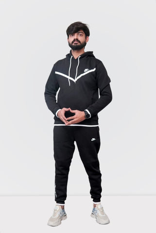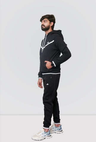 This black winter track suit combines warmth and flexibility, featuring insulating fabric to keep you comfortable in cold weather. Its sleek design ensures easy movement, making it ideal for both outdoor activities and casual wear during chilly days. Durable and practical, it offers reliable protection against the cold without compromising style.