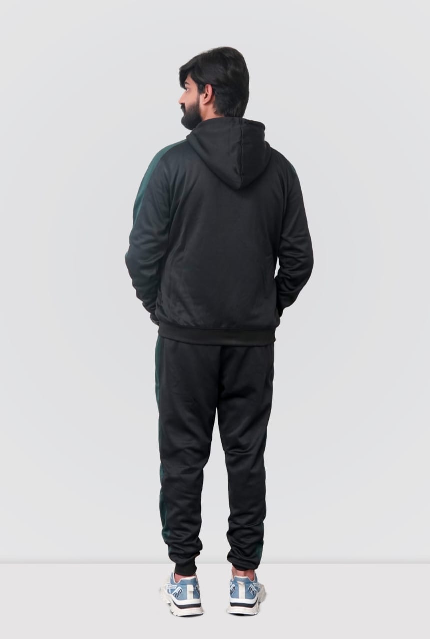 This black winter track suit combines warmth and functionality, crafted with insulating fabric to keep you comfortable in cold weather. Its sleek design allows for unrestricted movement, making it ideal for outdoor training or casual wear during chilly days. Durable and stylish, it offers reliable protection against the elements without sacrificing performance.