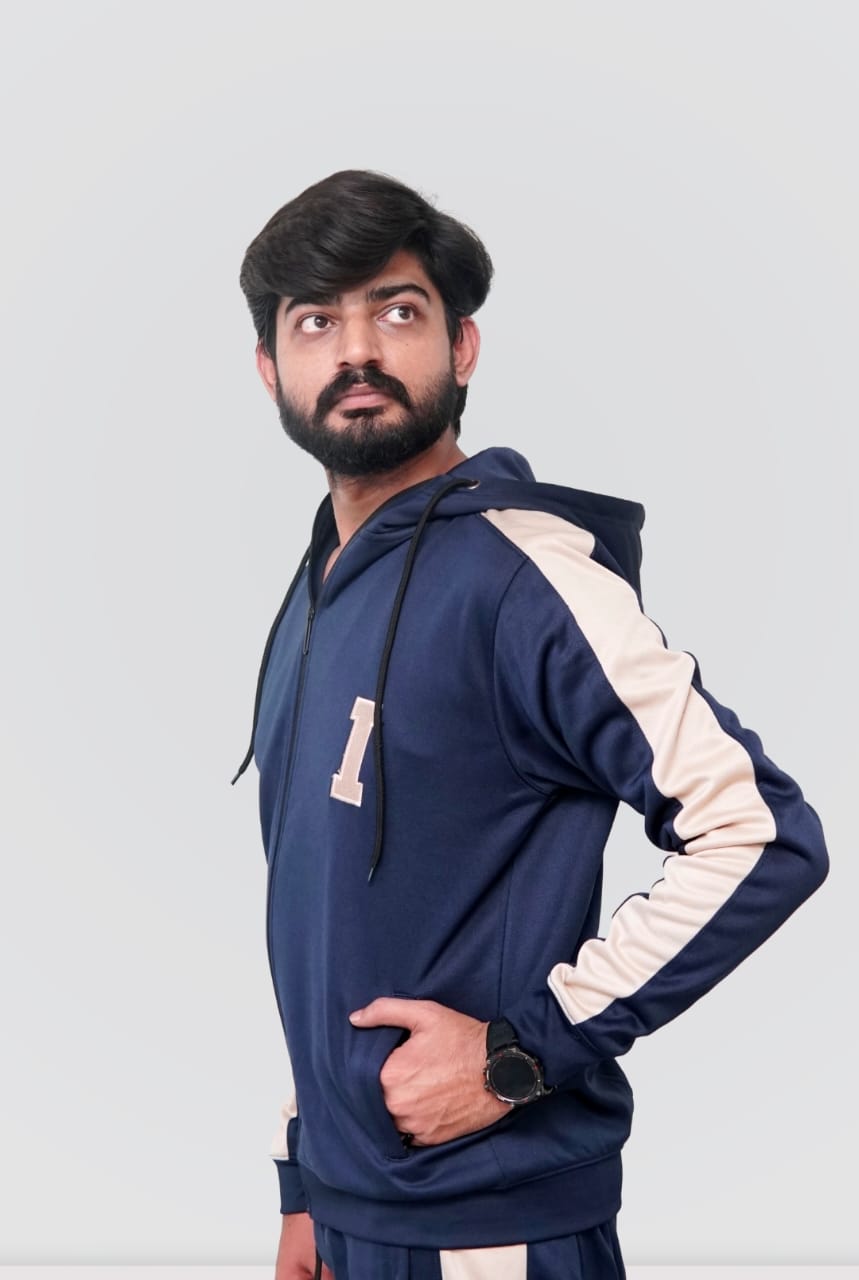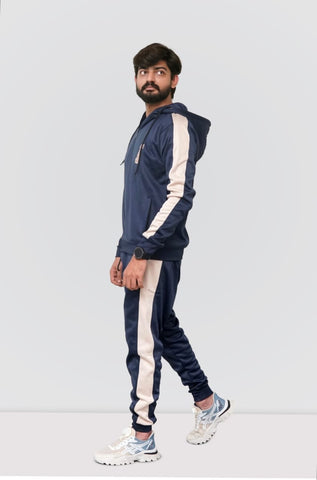 This blue winter track suit offers excellent warmth and comfort, designed for optimal performance during cold weather activities. Its durable fabric provides insulation without restricting movement, making it ideal for training or casual wear in winter conditions.